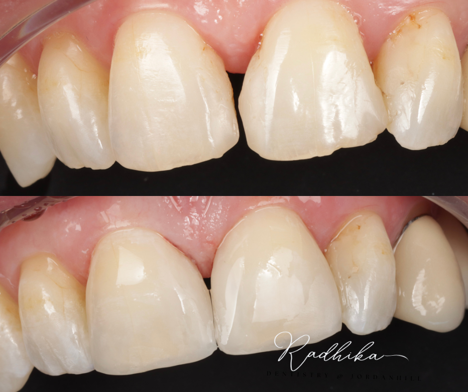- Finishing – the resin is hardened with a curing light and polished for a natural look.